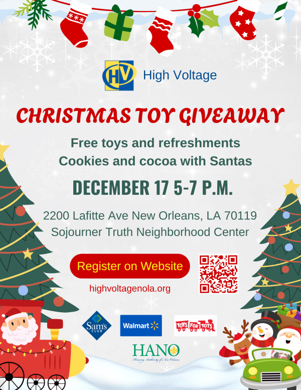 High Voltage needs several Santa Helper Elves to decorate Santa's Workshop prior to a Toys for Tots , Toy Giveaway on December 17 at the Sojourner Truth Neighborhood Center.  Elves will decorate a Christmas Tree, walls and tables in preparation from a visit from kids.